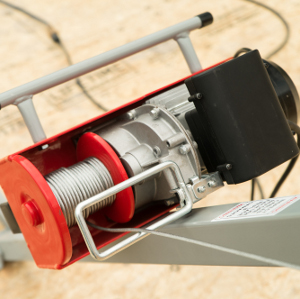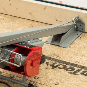 The 110v electric gear-reducing winch safely and quickly raises walls into the proper position without straining your back.